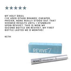 Made without bimatoprost, latanoprost, isopropyl cloprostenate, or hormone analogues of any kind, Revive7 Lash Serum is gentle, easy to use, and effective. Lashes will appear healthier and fuller and noticeable results may be seen in as little as 7 days.